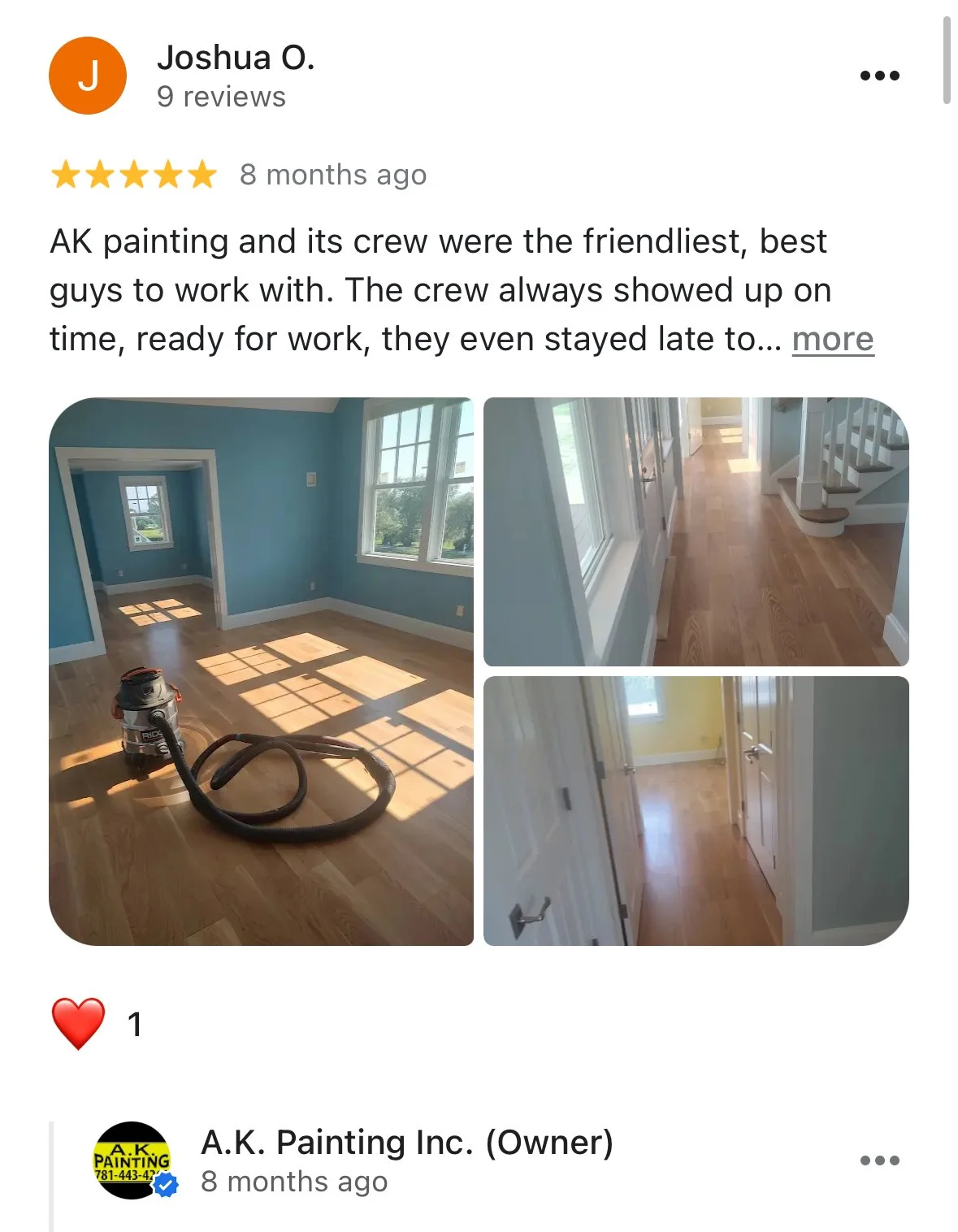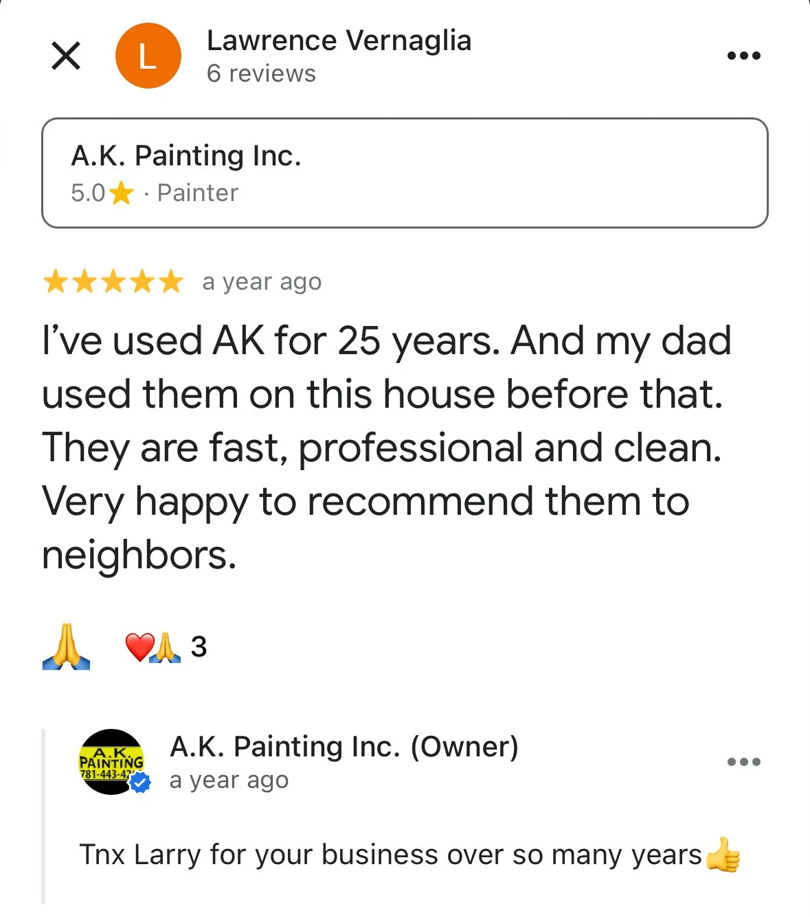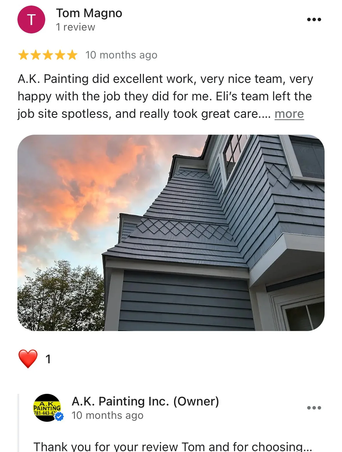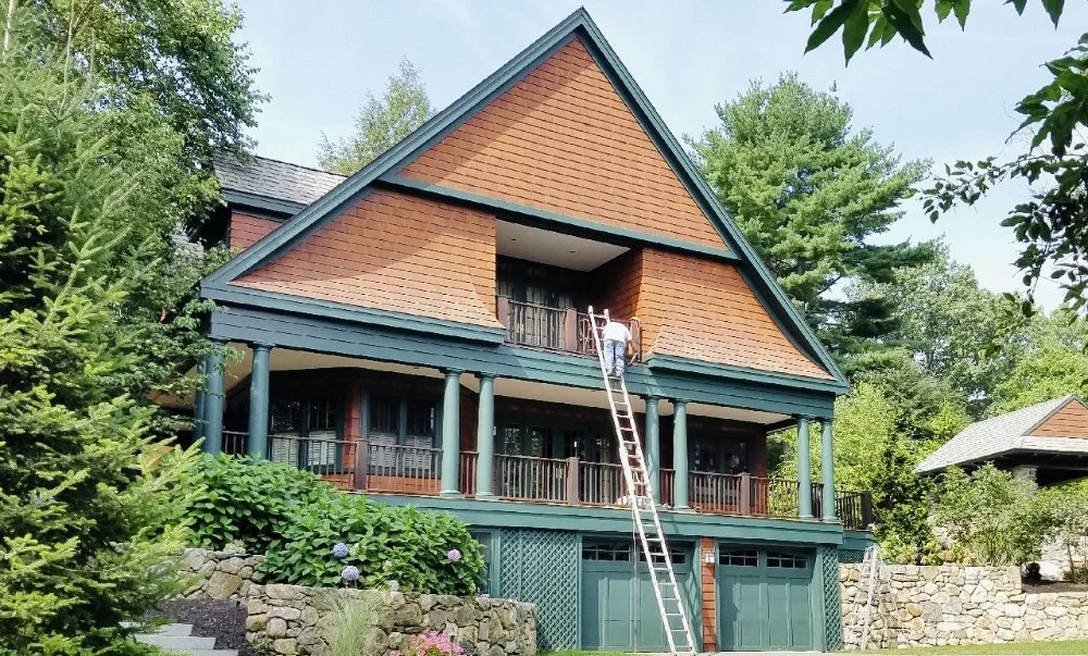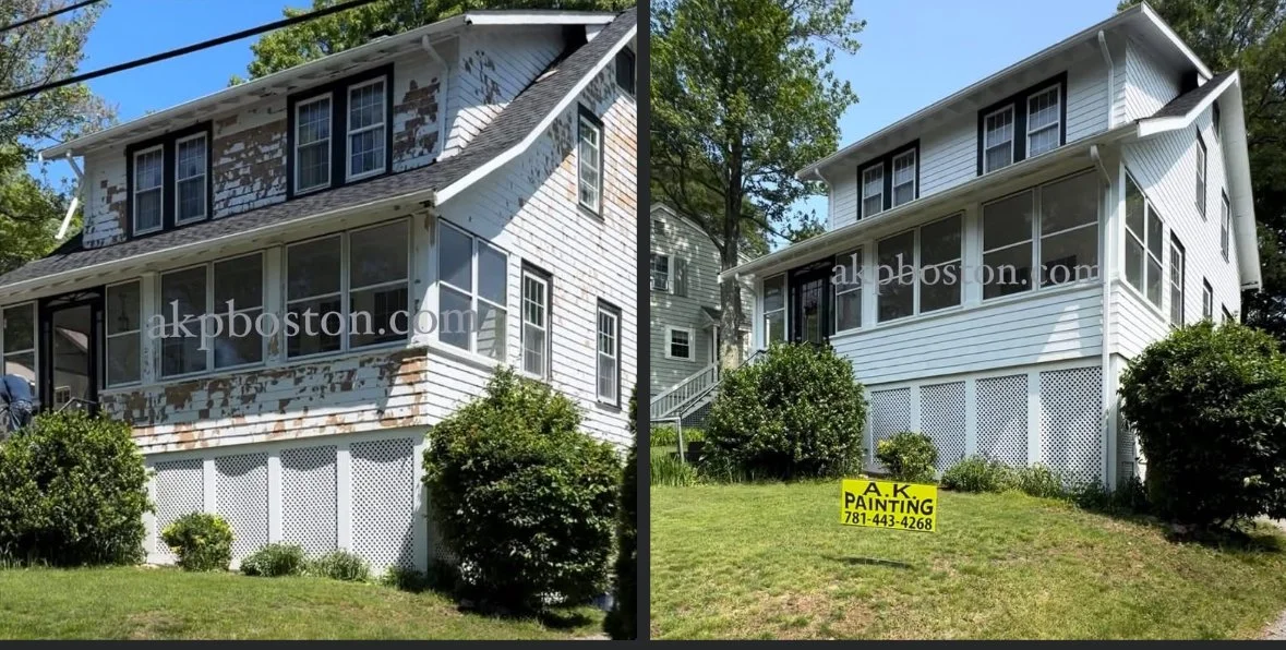 Exterior house painting project in Winchester MA – porch and siding painted by A.K. Painting Inc.