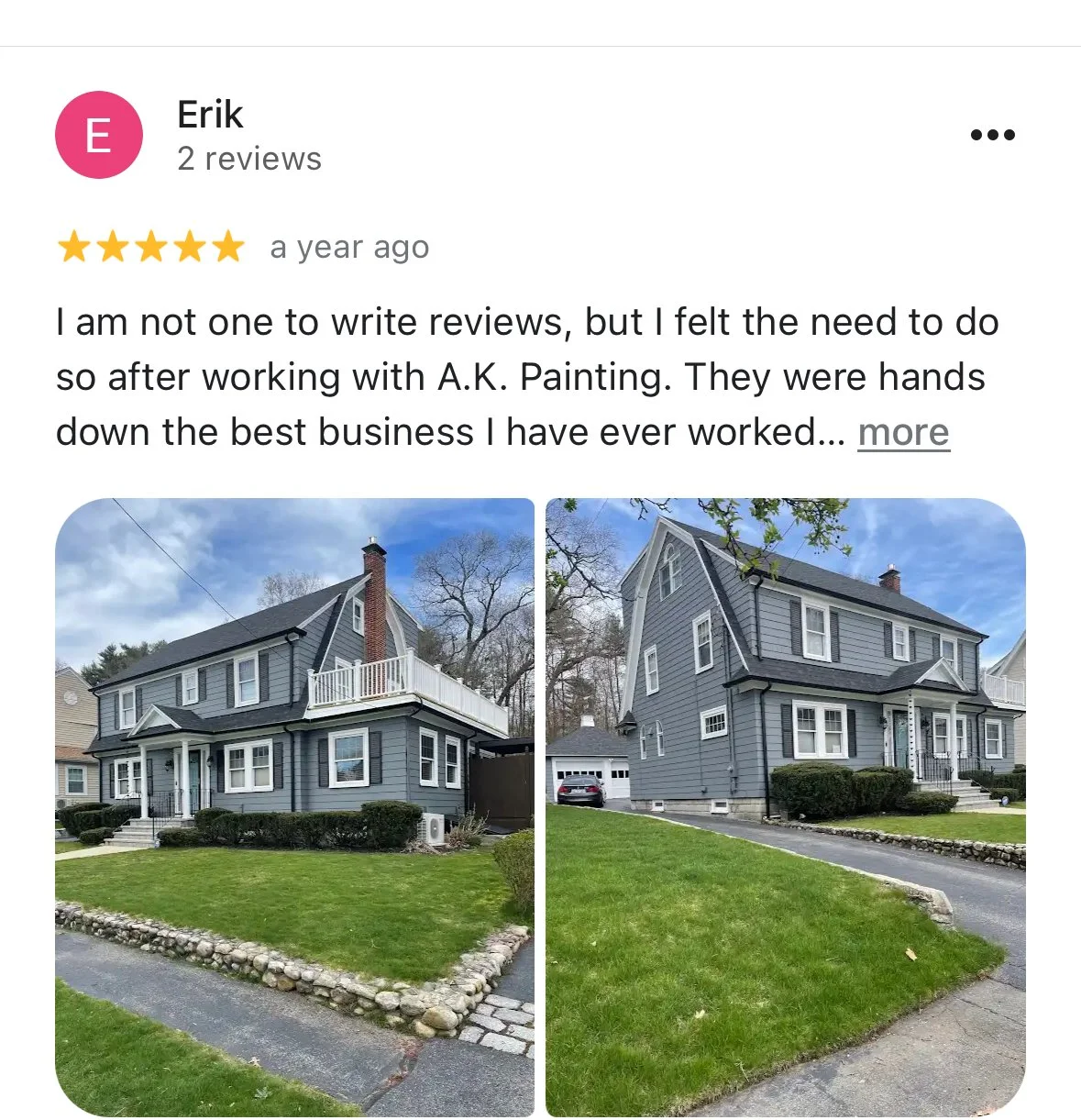 Exterior house painting project in Rehoboth, MA — siding and trim freshly painted by A.K. Painting Inc. for a modern, durable finish.